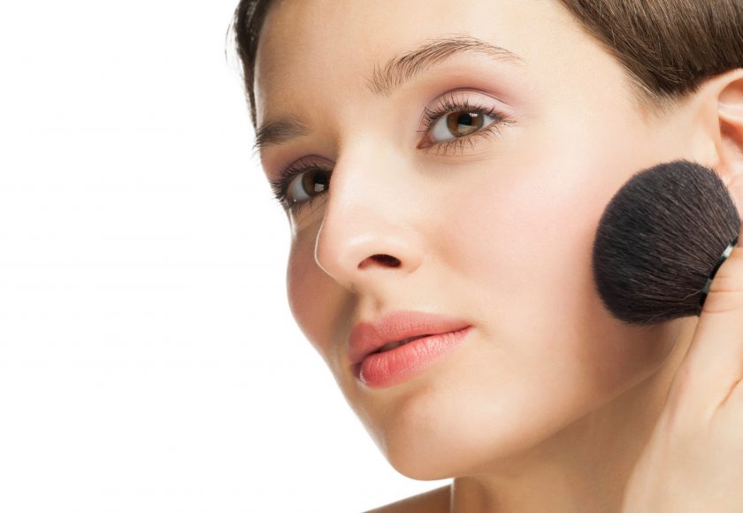 ナチュラルメイクで大切なのはお肌のつくり方。艶肌に仕上げるように、リキッドファンデーションやクリームファンデーションなどを薄く重ねていくように塗ります。この時、顔全体に同じ厚さで塗るのではなく、顔の中心から外側にかけてうすくなるように塗っていきます。カバーしたい部分はファンデーションではなくコンシーラーで部分的にカバーし、お肌の色補正は下地を部分的に使うことで厚塗り感を防いでカバーできます。