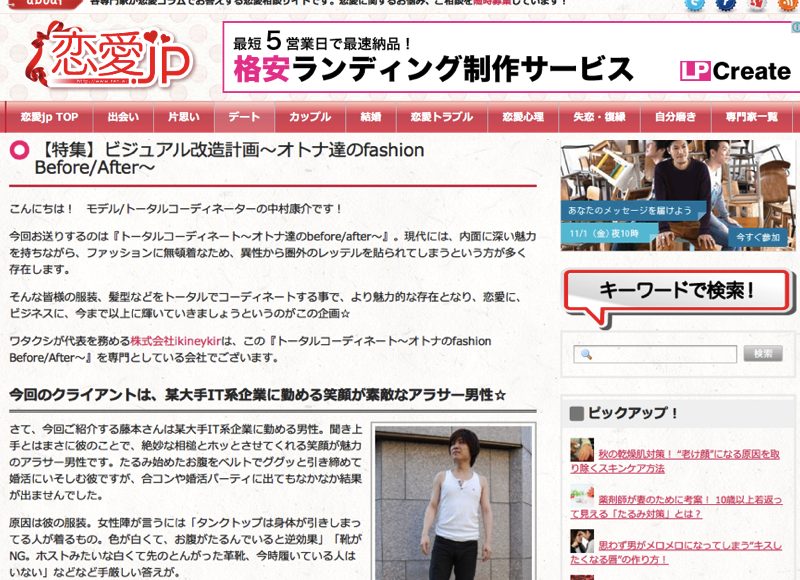 専門家による大手恋愛相談サイト「恋愛jp」の特集企画「ビジュアル改造計画~オトナ達のfashion Before/After~」にてトータルコーディネートラボが特集されました!