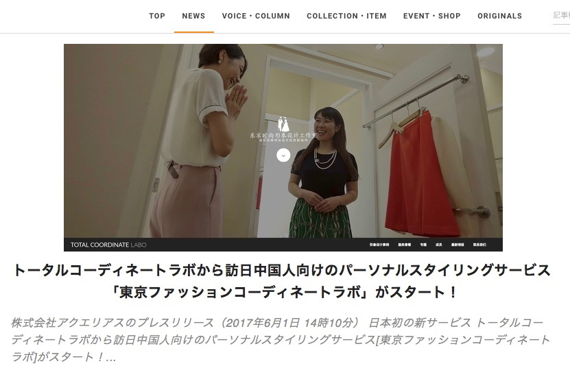 6/1より開始した弊社の「东京时尚形象设计工作室(東京ファッションコーディネートラボ)」がまたしてもメディアに取り上げていただきました!!